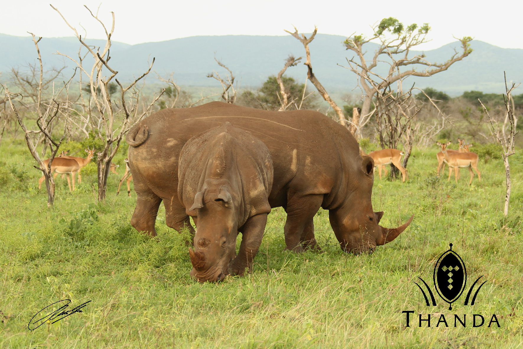 This White Rhino mum and her daughter were grazing in between a herd of Impala after a recent mud bath. They came very close to our vehicle which did not bother them at all. We had a great game drive!