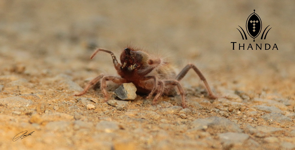 This sun spider sat in the middle of the road when I left the lodge. I took an eye level shot of this small predator – lying on my belly as usual 🙂