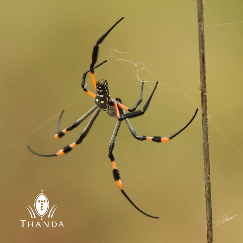 When the weather gets hot and humid many different species of Golden Orb Spiders build their webs along and across the roads on Thanda. Part of Bheki’s job at this time of the year is to take down the webs across the roads before they reach our guests.