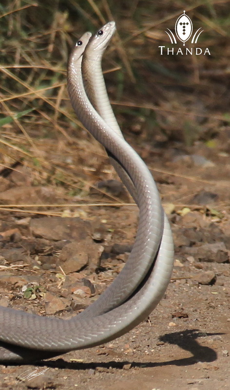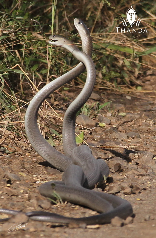 “When we were on the way to pick up our Thanda guests for the afternoon game drive we ran into these two Black Mambas. The two males were fighting for mating rights with a female in the midday sun on one of the main roads at Thanda. Both of them were so engaged in their actions that they were completely oblivious of us. What a sighting!”