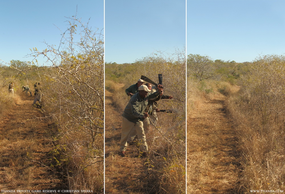 Another important responsibility is the bush-clearing of roads. During the summer many plants grow into the roadways and can turn a game drive into a “thorny” ride.