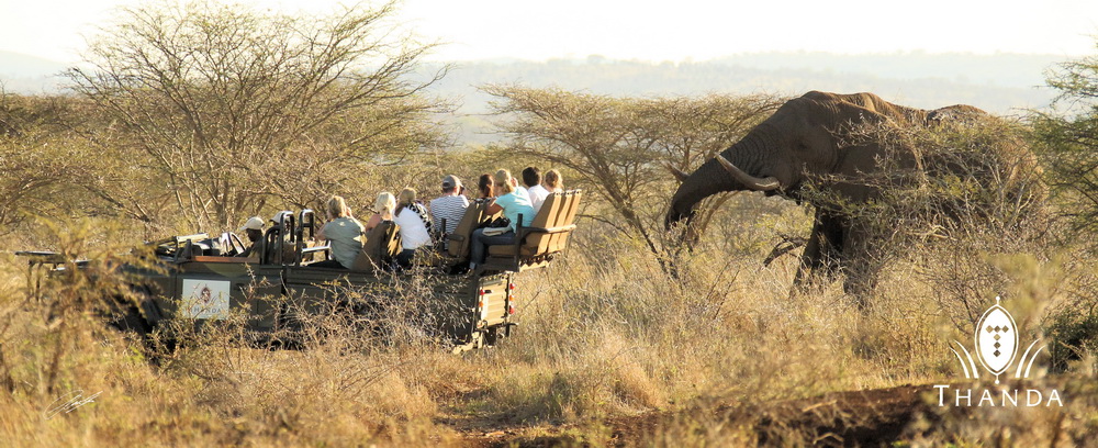 One of the many advantages of a stay at a Private Game Reserve is that the guides know their environment very well. When viewing Elephants the knowledge of an individual bull enables great encounters. The Thanda guests on this drive enjoyed the close up and personal meeting with one of Thanda’s largest Elephant bulls, a very good natured individual.