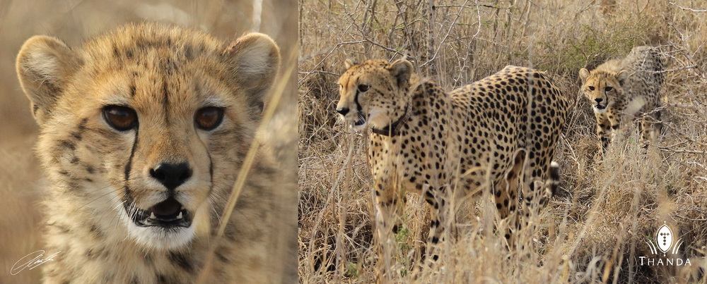 We saw the Thanda Cheetah mum today with her two cubs. Both of the cubs have grown a lot and are looking very healthy – they look like real Cheetah now π – What a sighting!