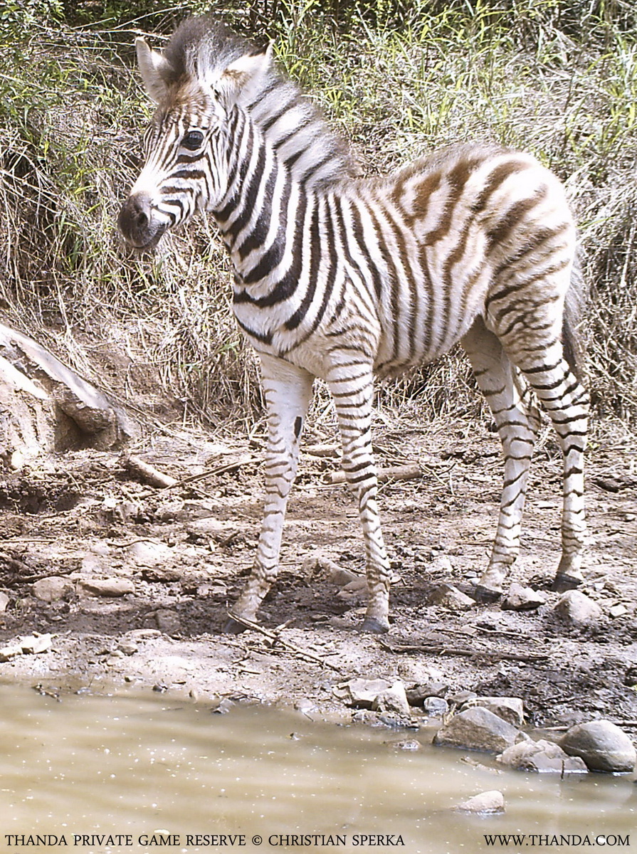 … and this little baby Zebra is also a regular daytime guest at the waterhole.