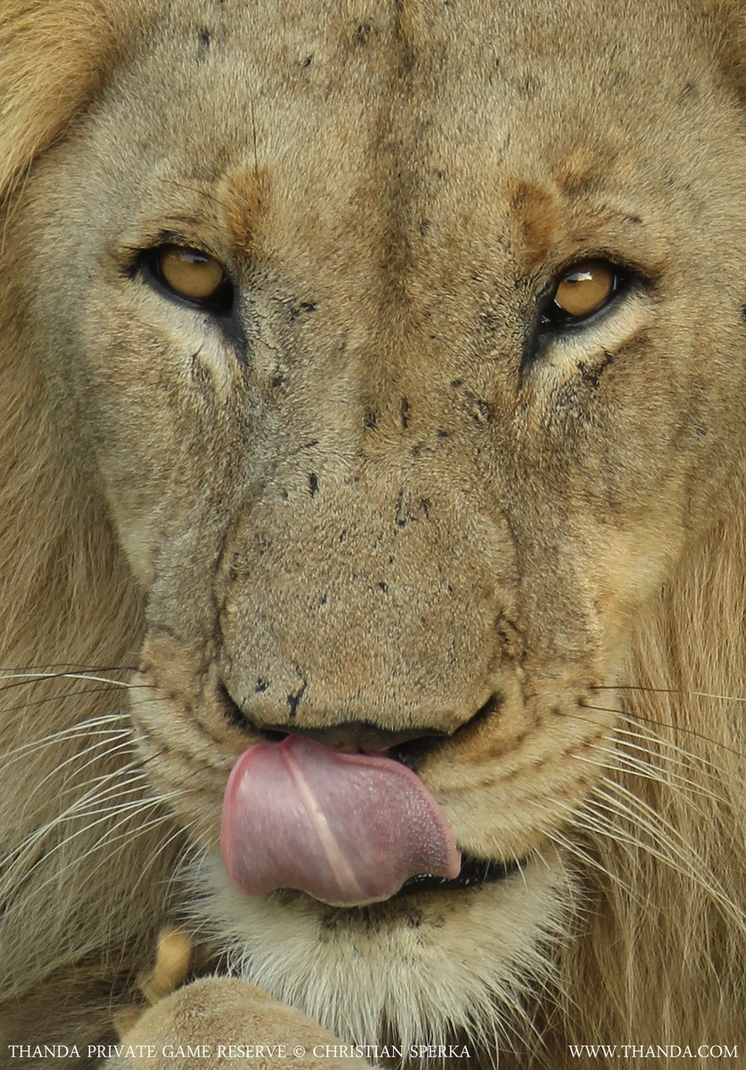 … and Thanda’s dominant male Lion smacking his lips after a big meal!