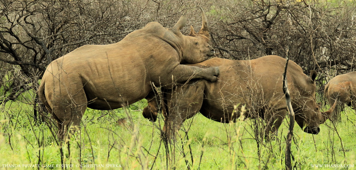 Thanda guests were able to observe this pair of White Rhinos mating when the sun set on the day and on this year. Considering all the bad news about the number of Rhinos killed in 2013 this scene promises some good news of a future birth for this threatened species. With a gestation period of 16 month it will be 2015 when the new calf will be born at Thanda.