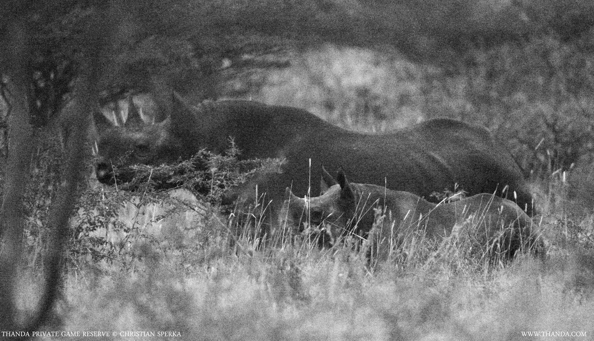 This is not the greatest shot of Rhinos I ever took, but it is evidence of a baby Black Rhino on Thanda.