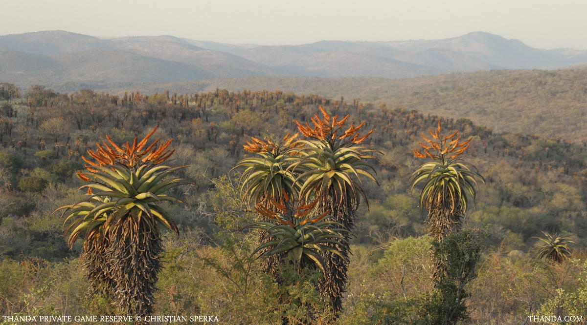 Flowering Mountain Aloes on the rolling hills of Zululand are a beautiful sign for the winter time. As all the brown tones replace the vivid greens of summer these stunning plants provide colour to the dry season landscape. Looking over one of the many Thanda valleys with Mountain Aloes – while enjoying a hot chocolate at sunrise or a gin&tonic at sunset – is one of the lasting memories for many of our guests.