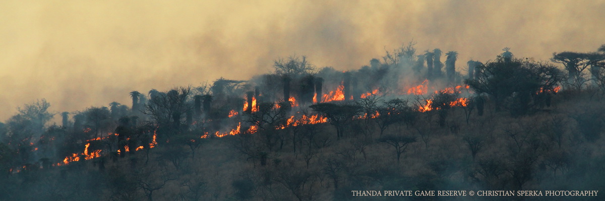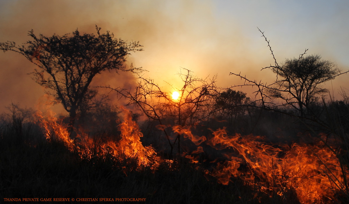 Just before the rainy season starts Thanda reserve management is helping the bushveld to rejuvenate by burning some parts of the reserve which have very long dry grass left from the winter season.
