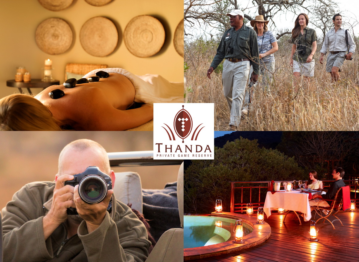 Valid for stays of 2 nights or more at THANDA SAFARI LODGE or THANDA TENTED CAMP, guests will enjoy a complimentary 30 minute massage per person as well as either a photography lesson (based on availability) or a bush walk at Thanda Tented Camp and a private dinner for 2 at Thanda Safari Lodge. * New bookings only