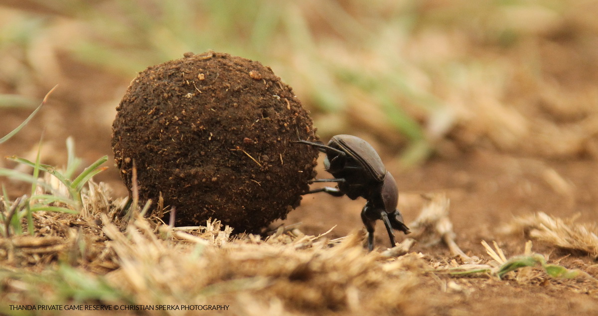 Dung Beetles are one of most fascinating family of creatures in creation. Strong as Hercules and persistent as Sisyphus they are one of the favorites of Thanda younger guests. Rolling huge dung balls these beetles are very powerful (compare to their body weight) and they can be most persistent when moving their ball up a hill. Even after many unsuccessful attempts to conquer an incline they will not give up. A very determined and tough member of nature’s cleanup crew. They possess exceptional dung disposal capacity. Many species of dung beetles, known as rollers, roll dung into round balls, which are then used as a food source or as brooding chambers.