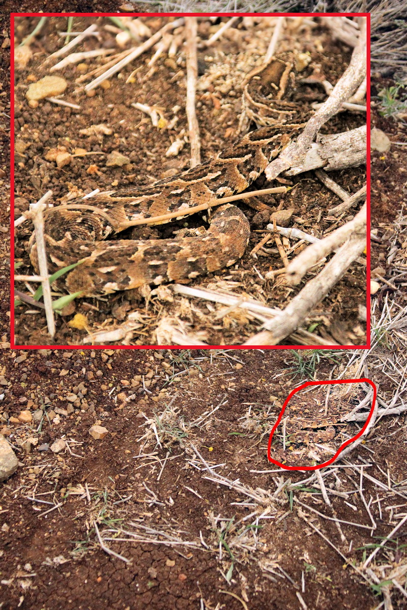 Brad (on Facebook) was the first to get the correct answer. We found this Puff Adder at Thanda House under a stack of fire wood. Due to the cold temperature it was very slow and did not react at all when Letishia took a piece of wood from the pile and discovered the snake.