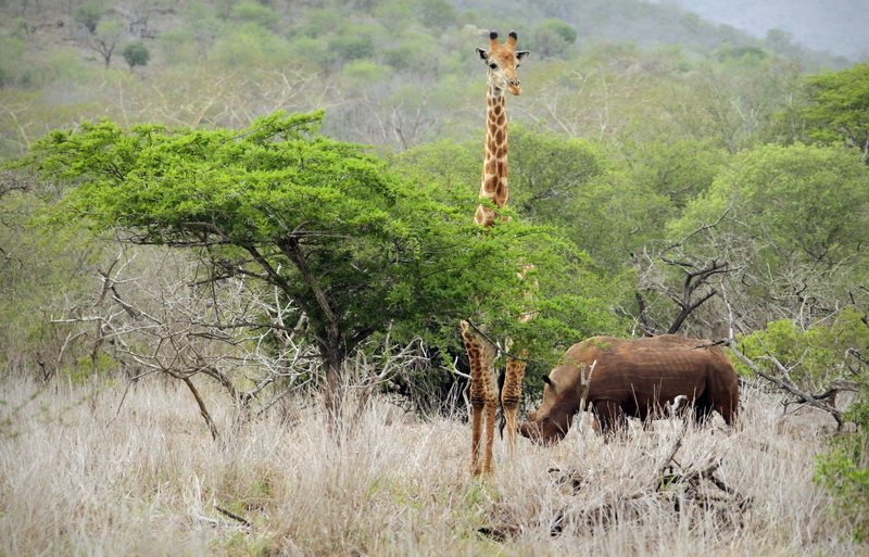South African Giraffe and White Rhino