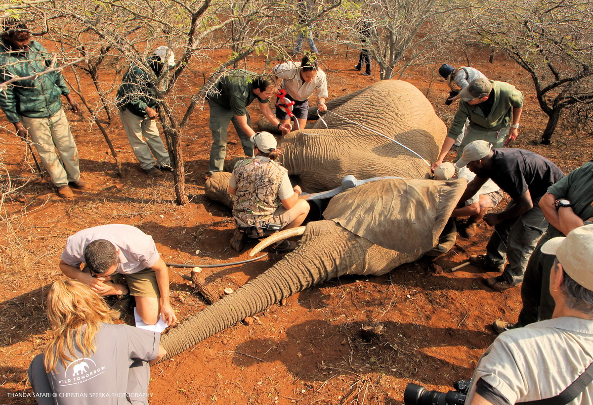 One of the Elephant cows is carefully measured during the procedure