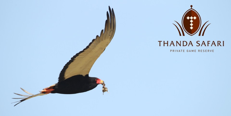 Bateleurs are a frequent sighting at Thanda Safari. These beautiful, medium-sized Eagles are quite colourful. This pictures, taken three days ago, show the scavenging nature of these birds. The female picked up a small rodent carcass and flew to a tree perch to have her dinner in peace and quiet.