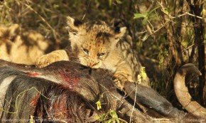 During this morning’s drive we spotted a Lioness with her small cubs along the road. She was leading us directly to a Wildebeest kill. The Lions had taken down the antelope only a… Continue reading